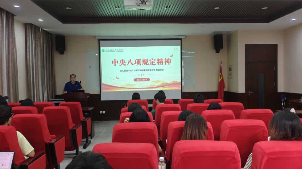 为深入贯彻落实党的纪律要求,强化学生党员纪律意识和作风建设,6月4日下午,学院党委副书记田长河为党员开展中央八项规定精神主题教育党课。社会工作本科生党支部、农村发展研究生第二党支部全体党员参与此次学习。