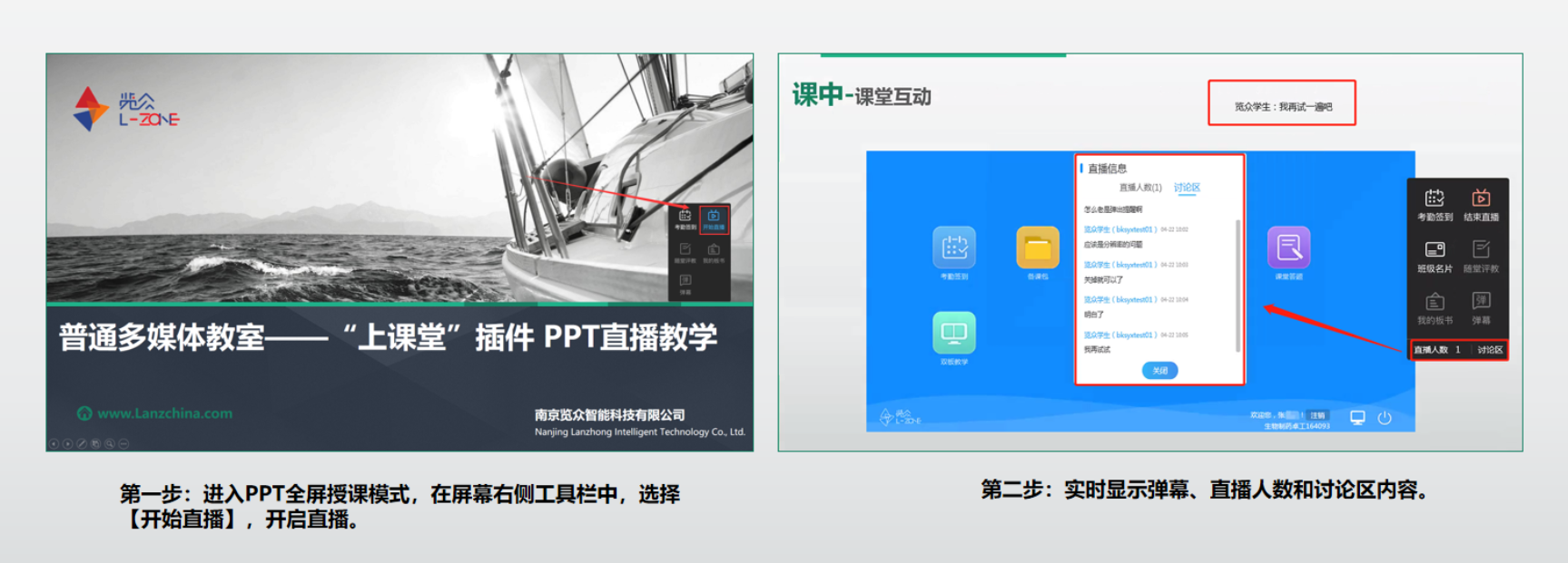 (2)在多媒体教室利用“上课堂”插件开展直播教学