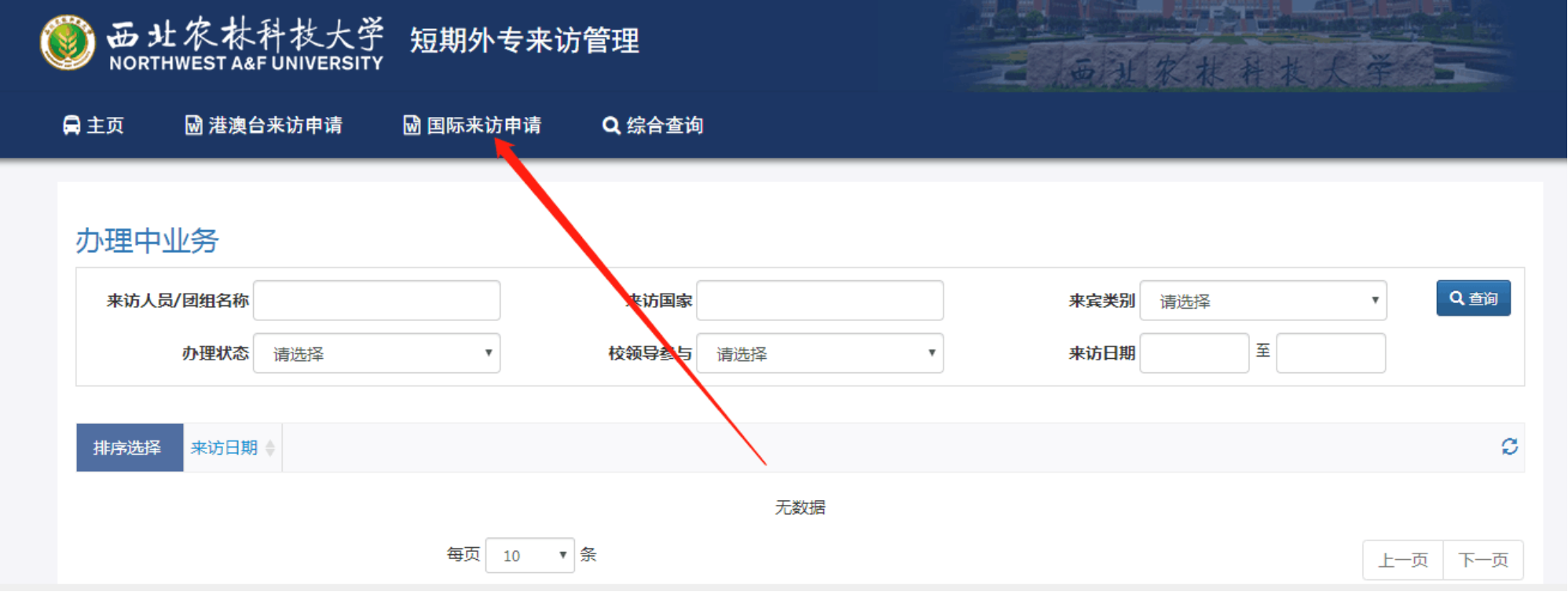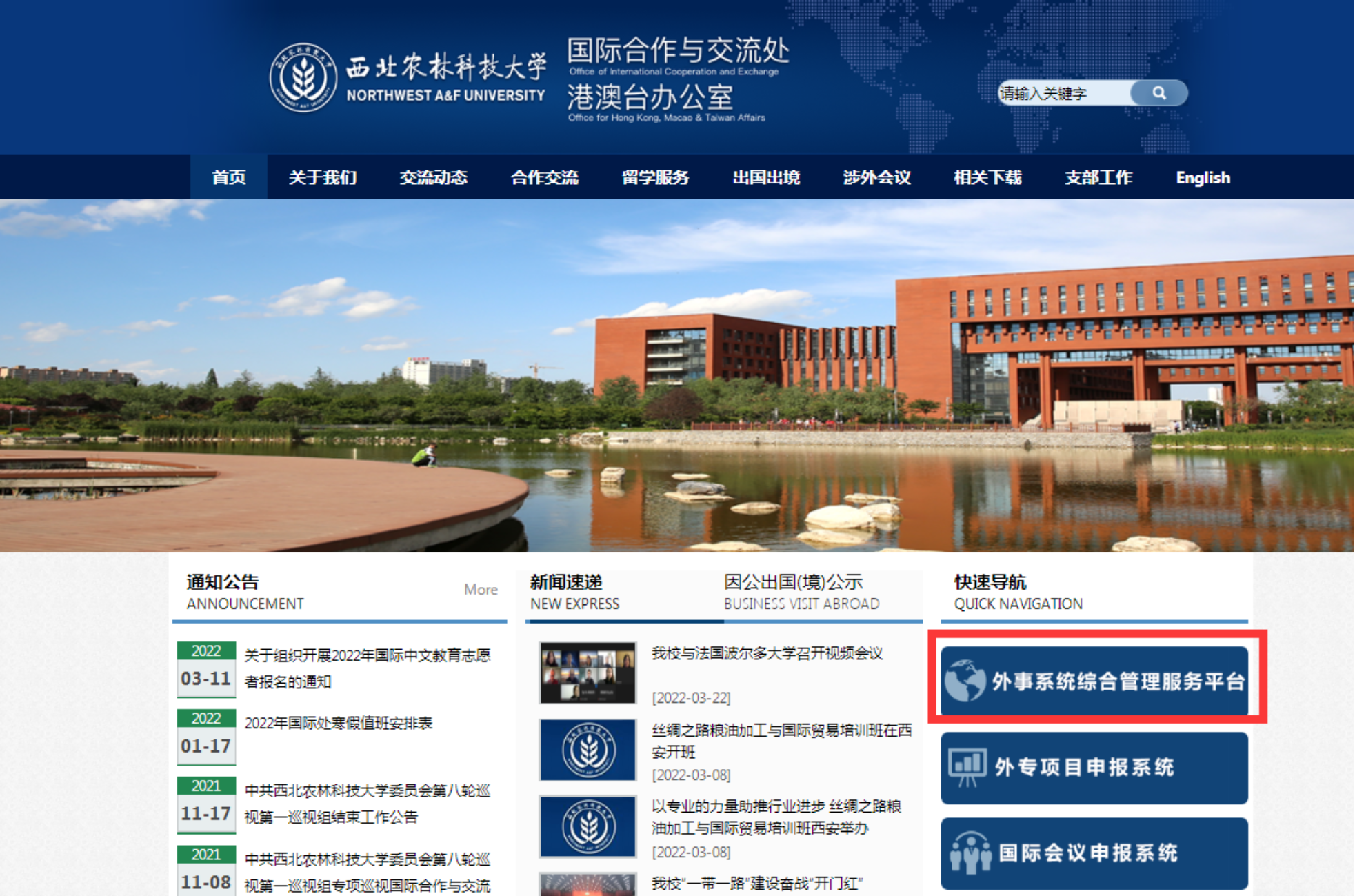 进入我校国际交流处主页