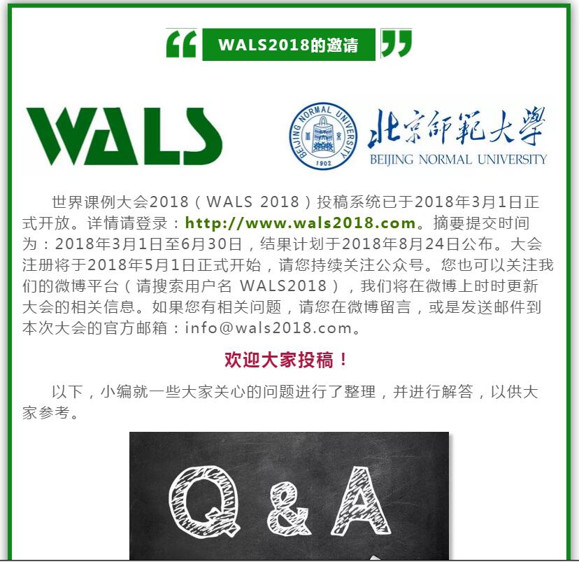 【转发】【WALS2018】来自世界课例大会2018的邀请