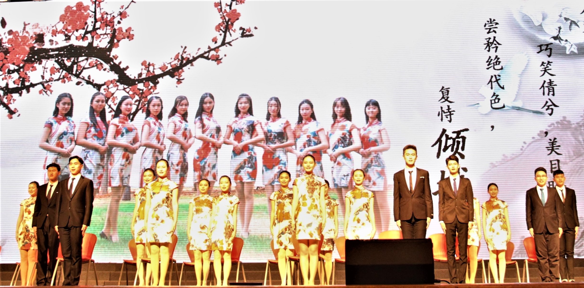 礼仪操展示环节,我院礼仪队在清浅的乐声中缓缓出场。年华正好的女生着温婉秀致的旗袍,笑容浅浅,仪态端方,动静之间,俱是风情;男生们则着西服正装,彬彬有礼,谦谦如陌上君子。握手、鞠躬、行走、端坐,他们在展现礼仪带来的魅力时,也给我们带来了一场视觉盛宴。