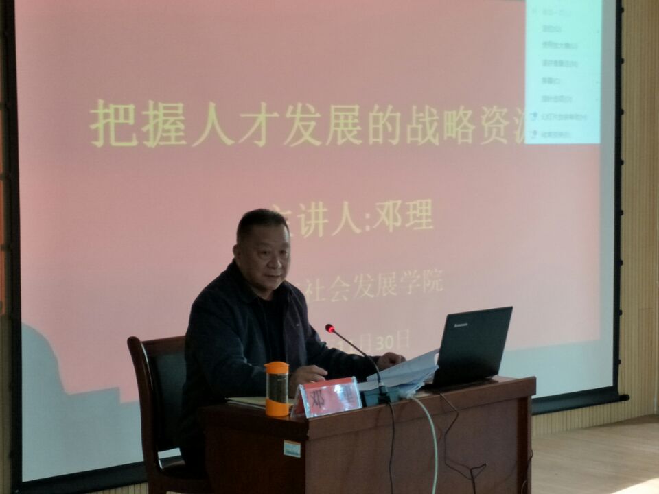 11月30日下午,省决策咨询委员会副主任邓理教授应邀为我校师生作了题为“把握发展的战略资源——关于人才开发的几个问题”的报告。院长朱宏斌主持报告会。