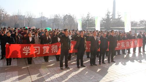 宣誓仪式结束后,师生进行了“12.4”校园三走活动,活动途中穿插了“一分钟了解宪法”、“宪法在我心中”等宣传点,让同学们在走出宿舍、走下网络、走向操场之际知法、懂法。