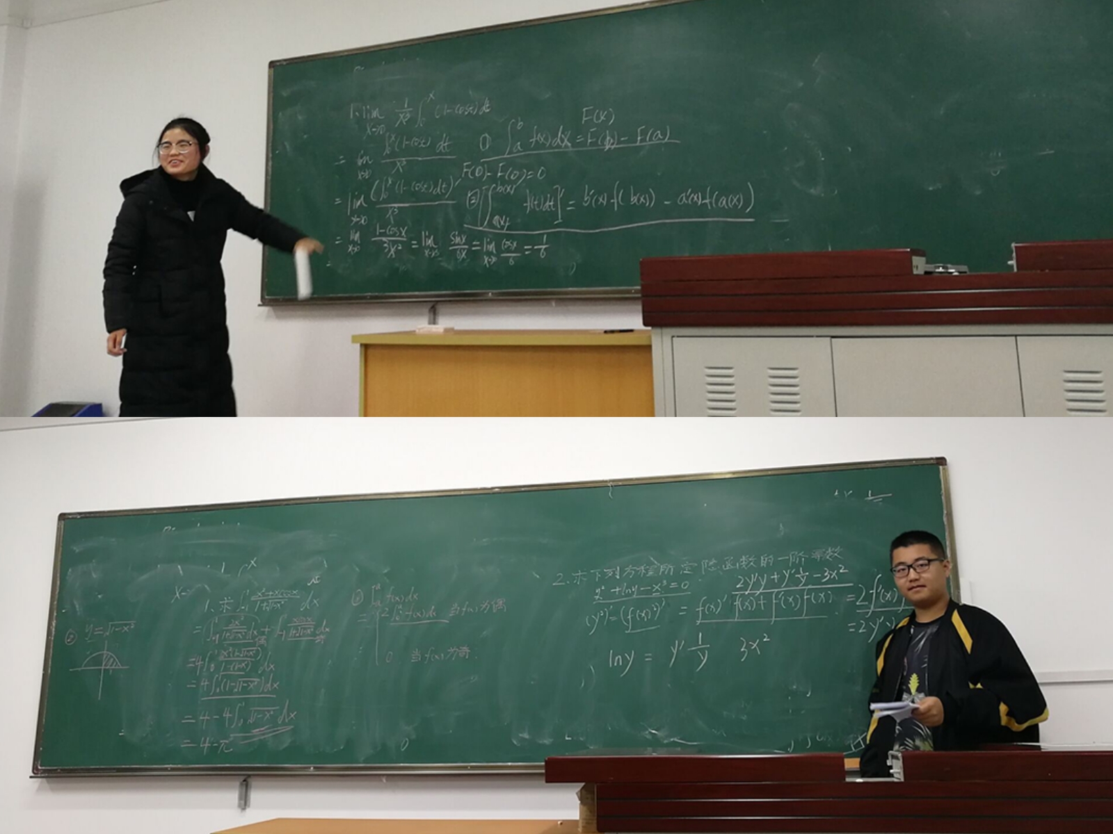 激发学生潜能,切实发挥学生自我教育、自我管理、自我服务的能力。学院组织学生自愿报名,成立高数讲解团,讲解团成员轮流负责晚自习为同学们讲解基础题型,增强对基础知识的掌握。在互帮互助的学习氛围中,实现双赢,既提高了数学基础差学生的学习动力和热情,也实现了高数讲解团成员的自我提升,讲解团成员期末的高数成绩平均分达到90分以上。