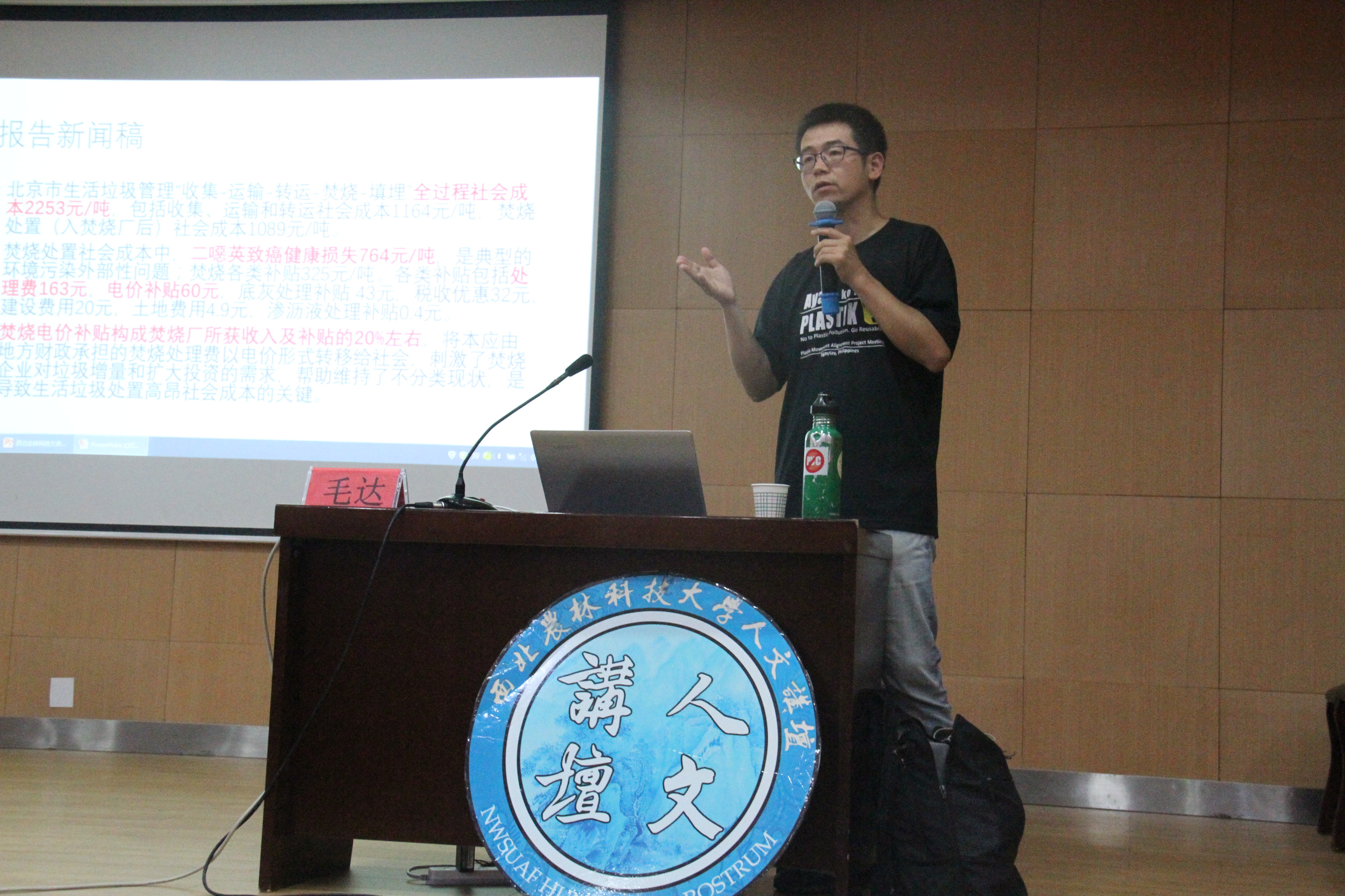 6月5日是世界环境日,为了引导广大青年学子担负起建设生态文明、建设绿色家园是的历史使命,践行生活方式绿色化,形成人人、事事、时时崇尚生态文明的社会新风尚,人文学院在世界环境日来临之际邀请民间环保行动无毒先锋发起人、独立环境智库磐石环境与能源研究所联合创始人毛达作客人文讲坛,为我校学子带来题为“垃圾与我们的生活”的讲座。