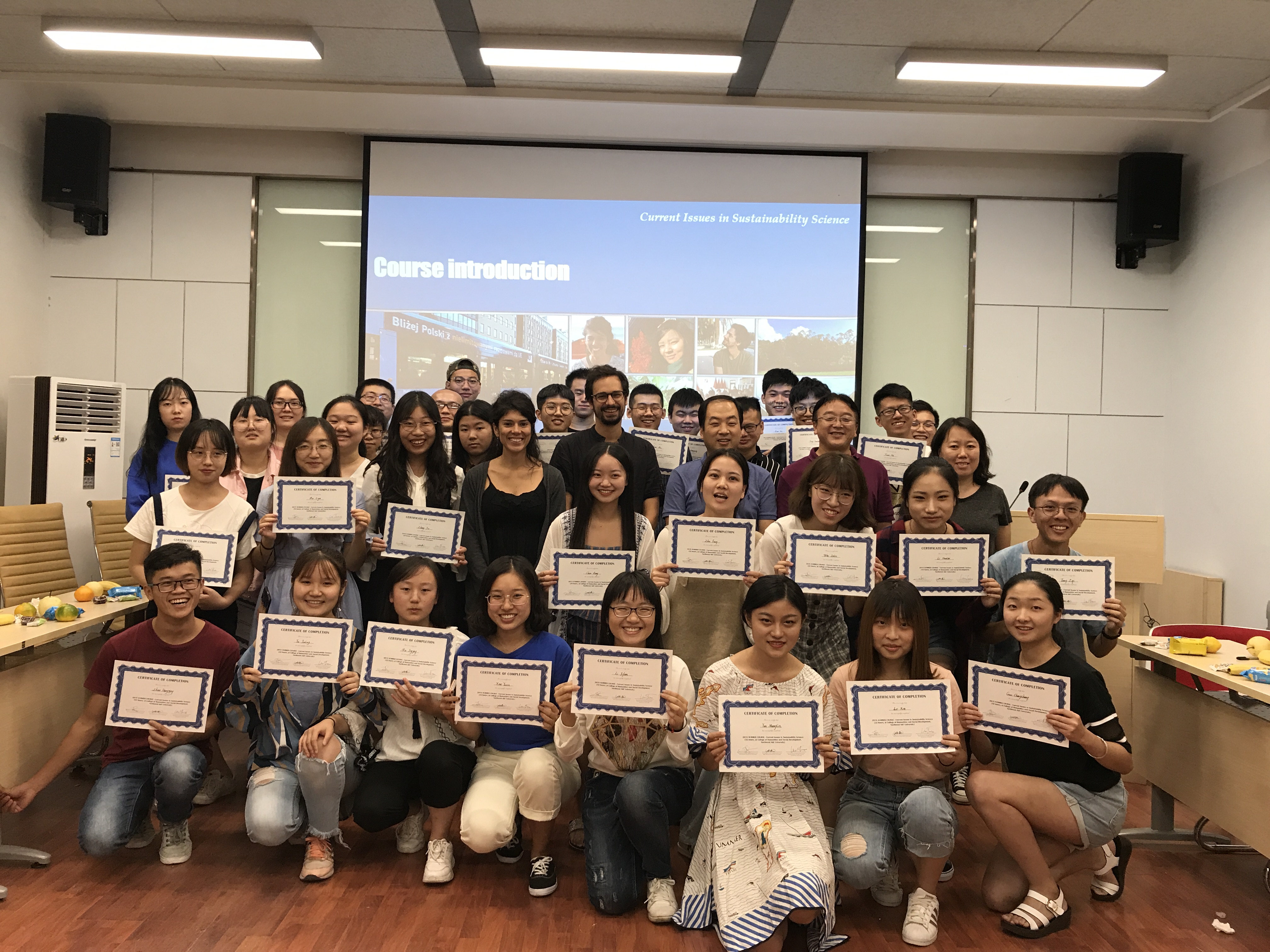 9月6日晚,一场简朴的小型音乐会,为这学期的暑期全英文课程画上了圆满的句号。本次暑期课程为学院连续第三年组织开设的《社会科学研究前沿》全英文课程,本次课程以“当前全球可持续性议题”(Current Issues in Sustainability Science)为框架,从生态经济学和政治生态学这两个新兴的学术领域及相应的研究成果出发,从跨学科的视角探讨了一系列人类当前所面临的可持续问题。