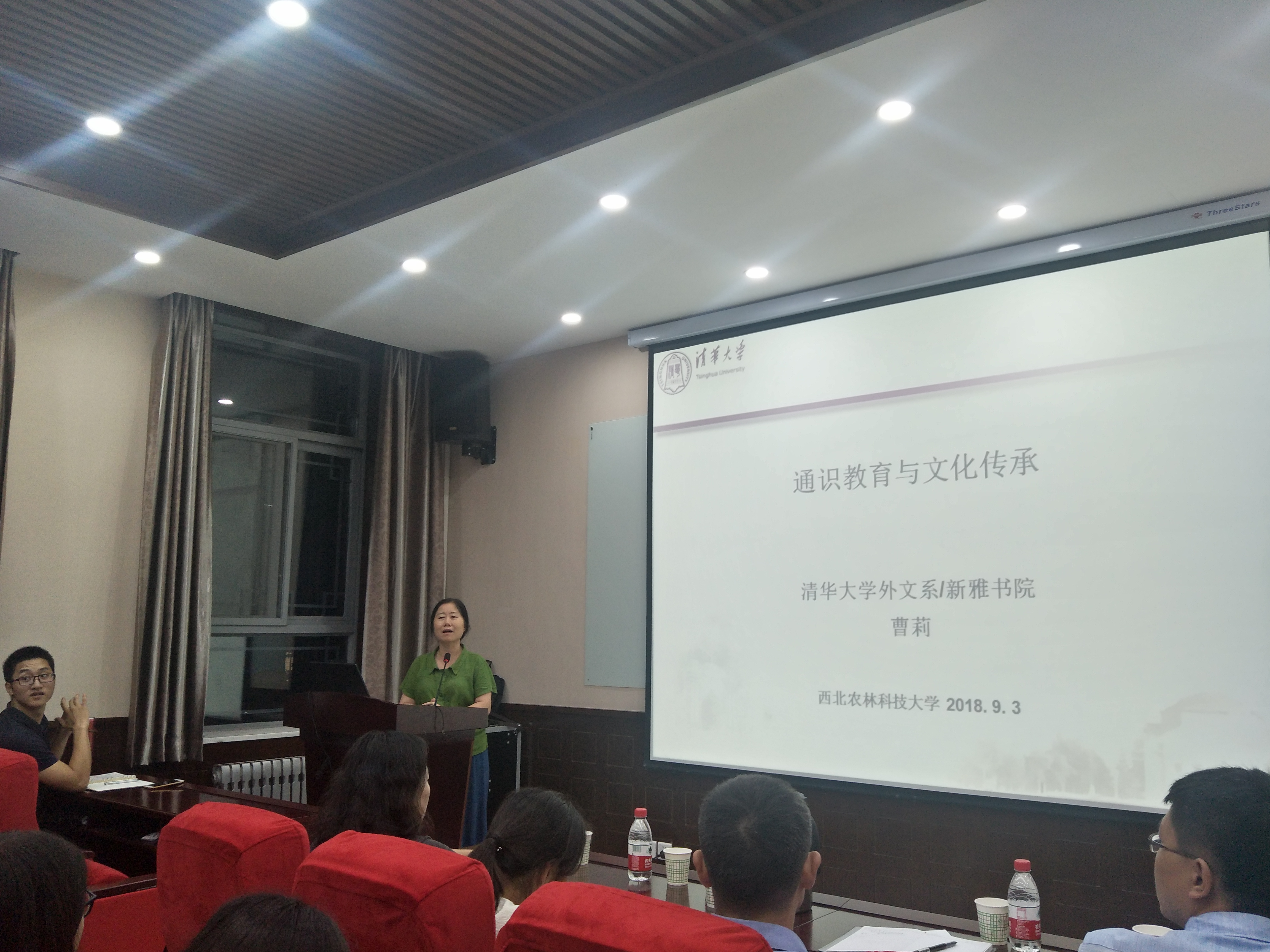 最后,曹莉教授对通识教育内涵与外延进行了详细讲解。她认为通识包括打通、融通、会通,通识教育是一种在现代多元化的社会中,为受教育者提供通行于不同人群之间的知识和价值观的多方面全方位教育。她指出,根据哈佛人才培养理念红皮书,大学生应培养具备有效的思考、思想的沟通、恰当的判断、判辨各种四种能力的学生。中国特色社会主义新时代也呼唤和需要全能人才。