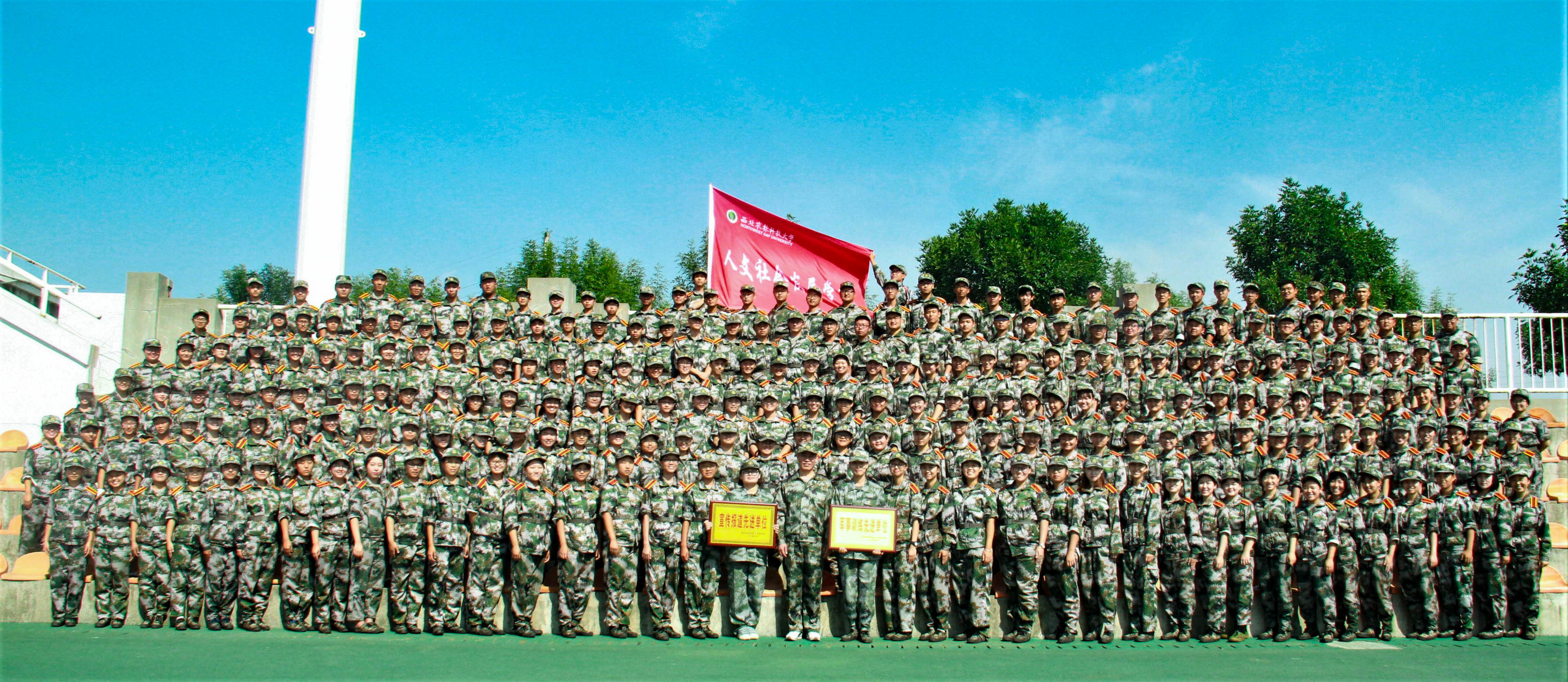 正是在全院领导、老师和学生干部的共同努力下,在学院新生的勤于训练与坚持不懈中,人文学院获得了可喜的成绩,最终荣获“军训宣传报道”和“军事训练”两个先进单位称号。