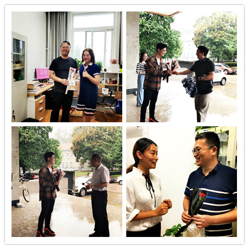 送礼物,诉祝福。9月10日一早院团委学生会学生干部早早来到学院办公楼前,手持精心准备的鲜花,等待着一位位老师,为老师送上教师节的第一份祝福。辅导员们也带着包装好精美礼物,写上真挚的祝福语,亲自拜访本学期为学生代课的所有教师,感谢老师们为学生的辛勤付出。学院团委副书记傅裕说:“这是我连续三年在教师节的清晨为老师们送上祝福。在教师节这个特殊的日子里,我想向所有老师表达感激之情,感谢老师们的殷切付出,感谢老师们为我们种下了知识的种子,教给我们做人的道理。”