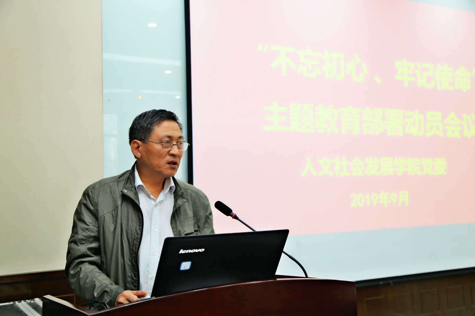 朱宏斌希望全体党员尤其是党员领导干部要深入学习部署动员会议精神,高标准推进主题教育,以主题教育的成效,推进“新文科”建设和“一流本科教育”,推动学院跨越式发展,更好地服务于学校“双一流”建设。党委副书记侯东丽在会上解读了学院主题教育工作方案。