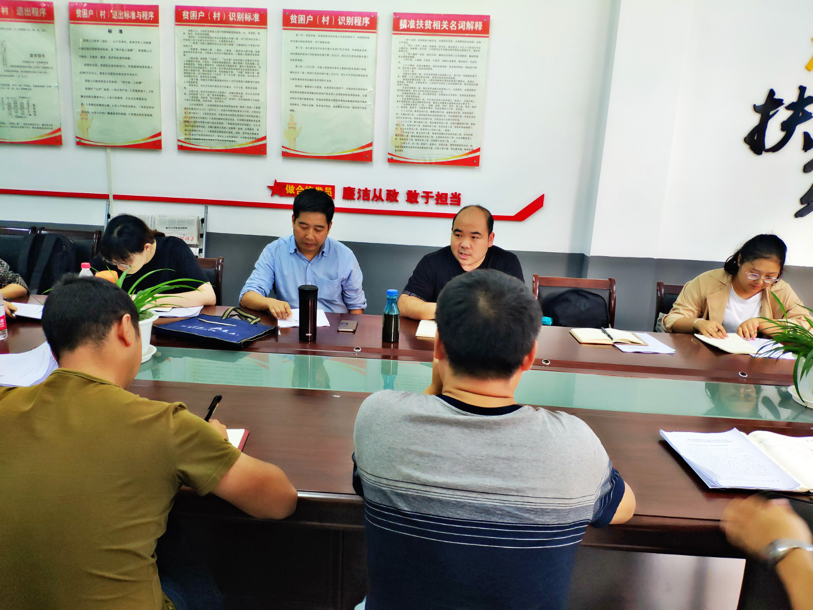 在座谈会议中,镇政府谭书记谈到在脱贫工作中最重要的是要发挥党建引领,激活内生动力,大力推行基层党建“三带四共”模式和“1211”扶贫工程,发挥党员先锋模范作用并不断夯实精准扶贫的实际成效。